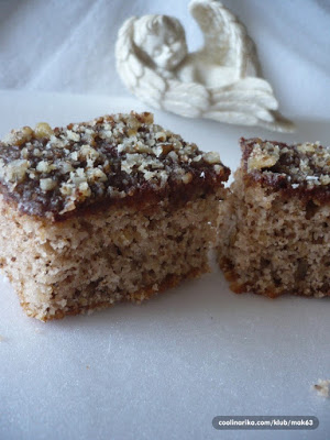 Topli kolač,pospite mljevenim oraima,i po želji čokoladom u prahu,i ohladite na sobnoj temperaturi.